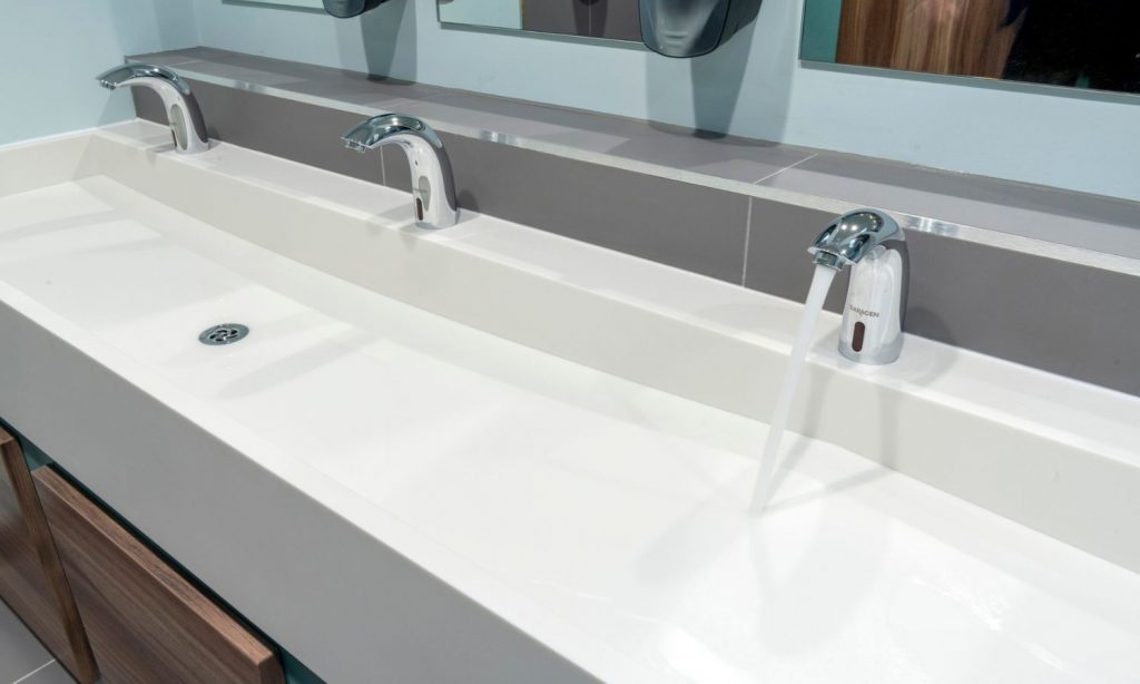 The client was seeking a bespoke twist when it came to the design of the solid surface wash troughs. Here, we collaborated with the project architect to create a unique, undulating design inspired by the organic curves that are normally found in nature, in Corian Cameo White